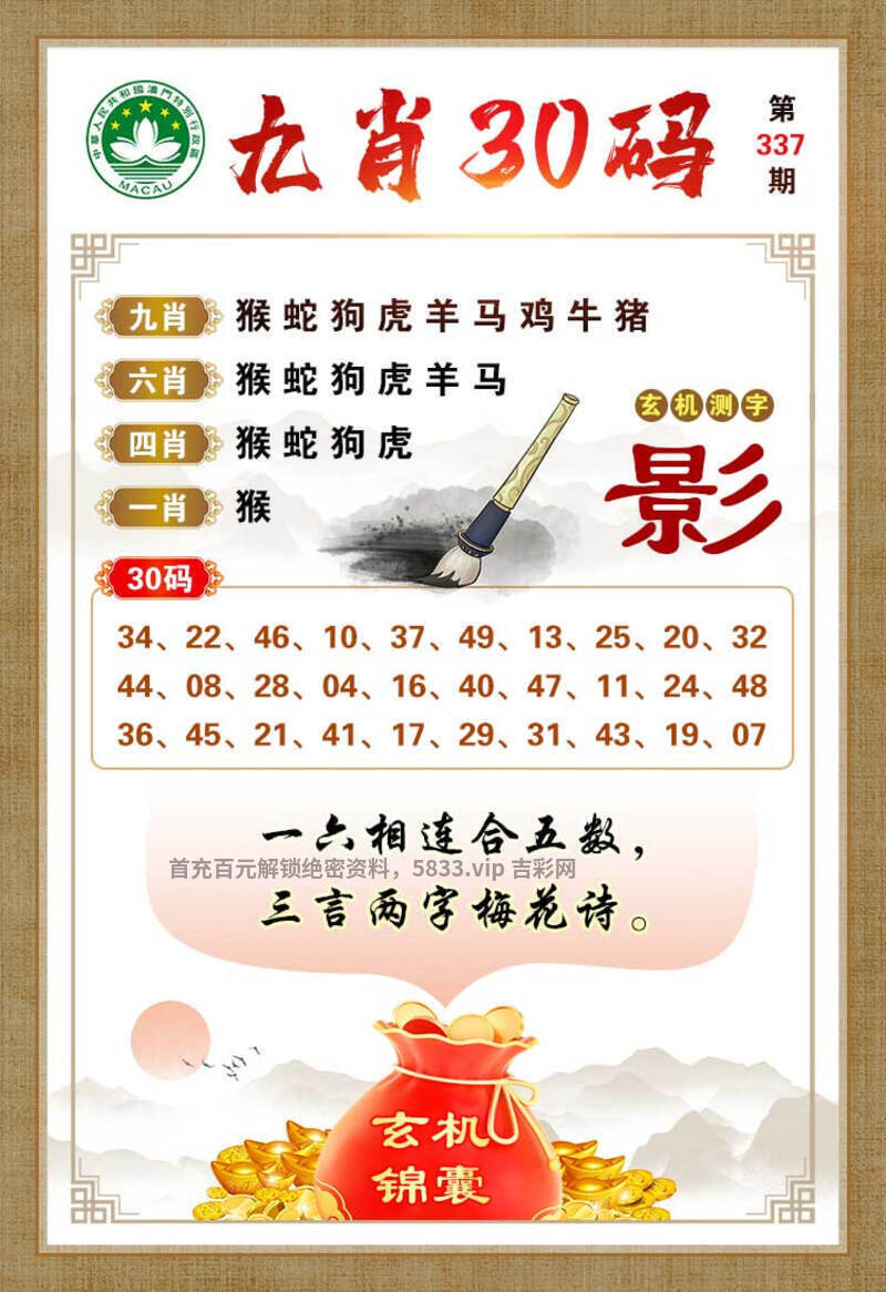 334期:【澳彩30码】中特开猴46准